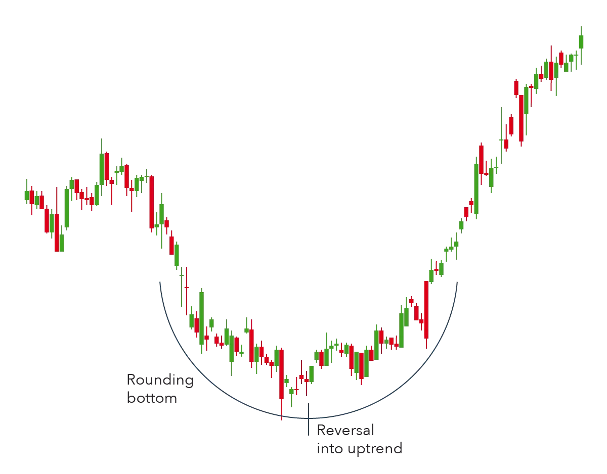 A rounding bottom chart pattern can signify a continuation or a reversal. For instance, during an uptrend an asset’s price may fall back slightly before rising once more. This would be a bullish continuation.